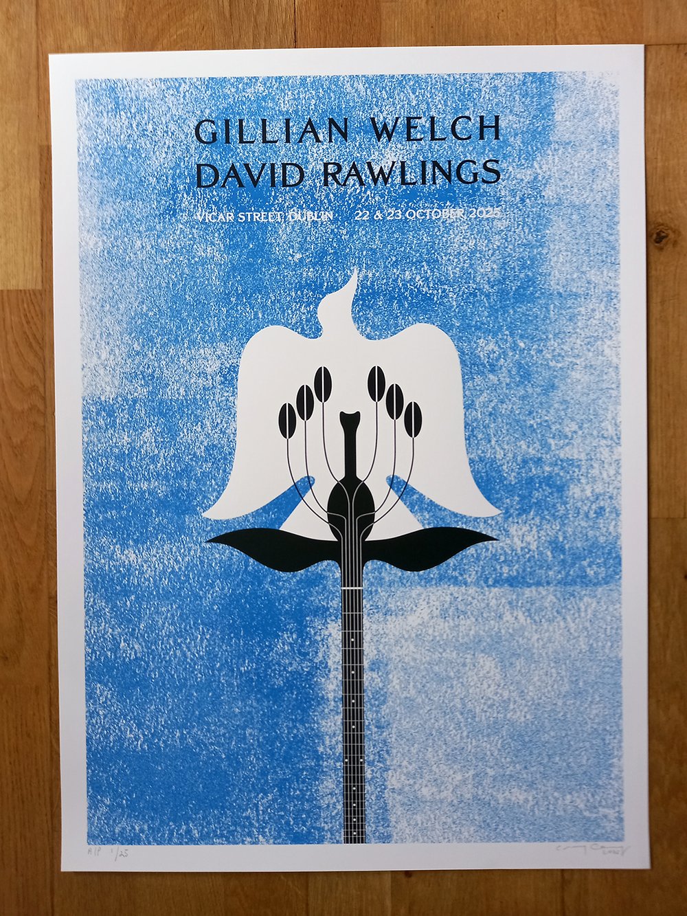 New 2-colour screen print, gig poster for Gillian Welch & David Rawlings' pair of shows at Vicar Street, Dublin, on 22 & 23 October 2025.